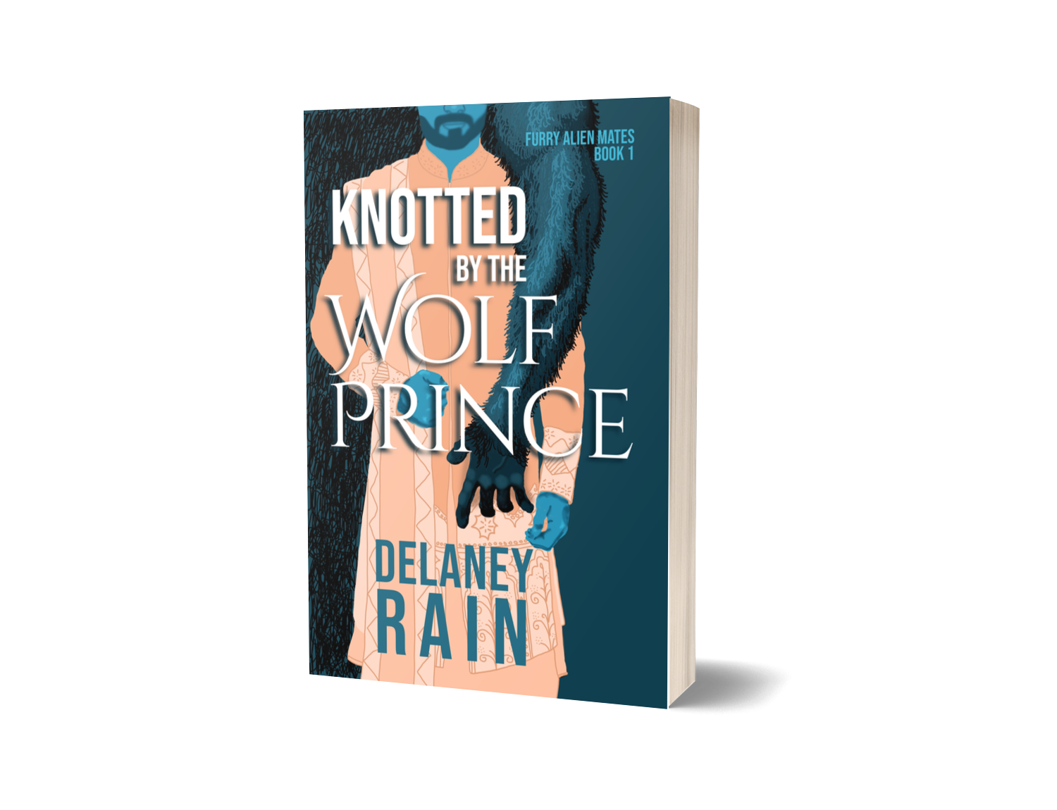 Knotted by the Wolf Prince features an anthropomorphic wolf as an alien, a human cop turned consultant, boss/employee relationship, lots of knotting (obvi), cuddles with fluffy black fur, licks and kisses, nanobots healing everything, overcoming bad actors who can't accept help from aliens, and a HEA. This is the first in a planned 6-book series featuring different couples that should be read in order.